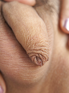 Young petite ladyboy schoolgirl jacks her uncircumcised cock